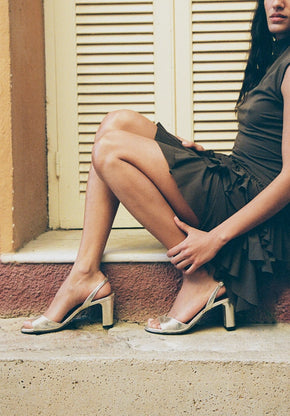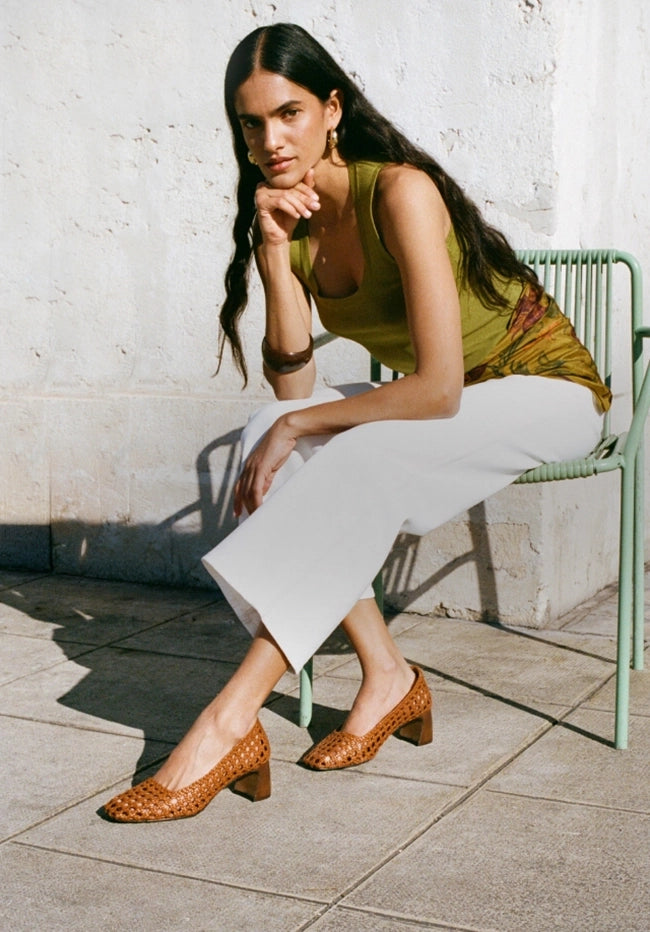 Cette sandale joue l’équilibre parfait : un nœud de cordons habille le pied comme un détail bijou, tandis que le talon bloc apporte de la hauteur sans compromettre la stabilité.